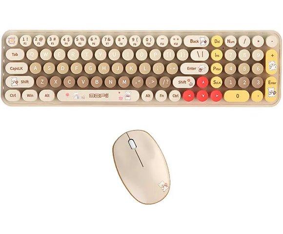 MOFII BABY BEAR BEIGE bežični komplet tastatura i miš, Povezivanje: Bežično, 2.4 GHz, Domet: 6-10 m, Miš: 3 tastera, 1200 DPI, 1x AA baterija, 75 g, Tastatura: 85 tastera, 2x AAA baterije, 499 g