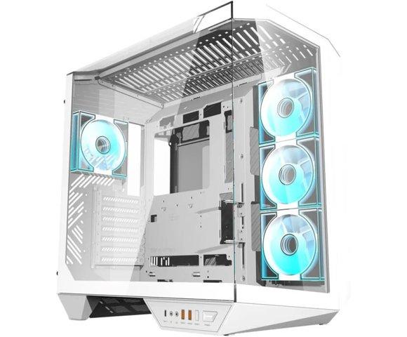 Darkflash DY470 White gaming kućište, Tip: Mid Tower, Materijal: 0,7 mm SPCC, Dimenzije: 450 x 298 x 473 mm, Podržane ploče: ATX, Micro ATX, ITX, Slotovi za diskove: 2x HDD 3.5", 1x SSD 2.5", Maks. GPU dužina: 410 mm, Maks. CPU hladnjak: 175 mm, Ventilatori: 4x DM8 instalirani (maks. 10), Portovi: 2x USB 3.0, 1x USB-C, audio ulazi, Boja: Bijela