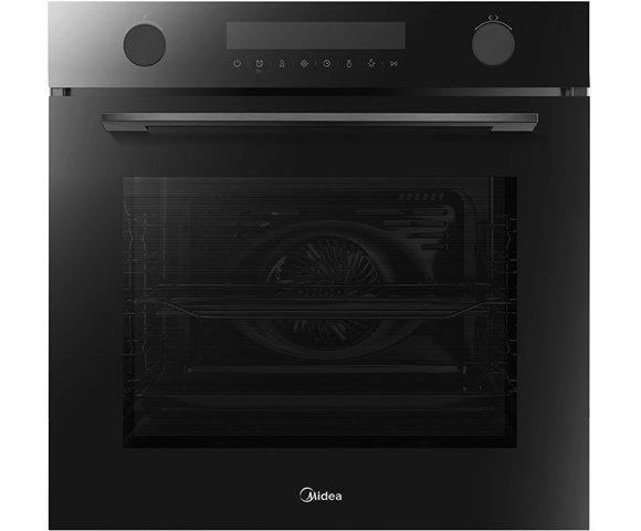 Midea 7NM30E0B ugradna rerna │ Boja: Crna sa crnim staklom, Zapremina: 72L, Snaga: 2900W, Energetski razred: A+, Upravljanje: Elektroničko, Soft touch, Push gumbi, Temperatura: 30-250°C, Dimenzije: 596x566x596 mm, Broj stakala na vratima: 3, Teleskopske vodilice, Programi: 12 (Grill, Konvekcija, Pizza, Odmrzavanje itd.)