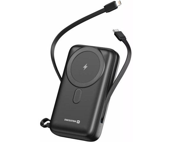Swissten Powerbank 20 000 mAh 20W, built-in cables USB-C and Lightning, Magsafe compatible