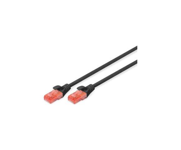 Digitus DK-1612-010/BL mrežni kabl, Kategorija: Cat 6, Priključak: 1:1, Struktura jezgra: višeslojni (stranded), Jezgro: CCA (bakarom obloženi aluminijum), Izolacija: PVC, Boja: crna, Dužina: 1 m, Presjek: 26 AWG