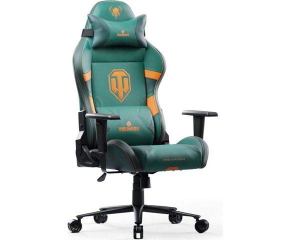 Diablo X-One 2.0 World of Tanks (Green) gejmerska stolica, Maks. težina: 140 kg, Materijal: Sintetički materijal (sjedište i naslon), Boja: Crna/Zelena, Tema: World of Tanks, Dimenzije: 124-133 cm visina, 57 cm širina sjedišta, 51 cm dubina sjedišta, Podesivost: 1D nasloni za ruke, podesiva visina sjedišta, podesiv naslon, Ergonomski dizajn: Da, jastuk za donji dio leđa, naslon za glavu, Točkići: 5 (plastika/guma), Težina: 23 kg │