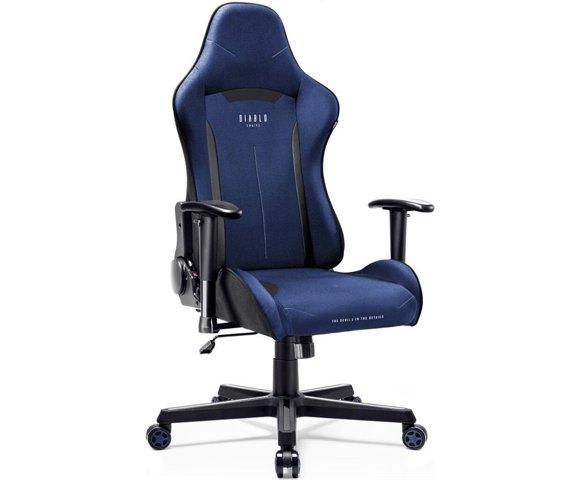 Diablo X-Starter (Navy blue) gaming stolica │ Tip: Gejming stolica, Nosivost: 136 kg, Dimenzije: 680 mm širina, visina 122-132 cm, sjedište 53.5 x 49.5 cm, visina sjedišta 46-56 cm, Materijal: Tkanina (sjedište i naslon), Podesiva visina sjedišta: Da, Nasloni za ruke: 2D podesivi, Naslon za glavu: Ne, Naslon za noge: Ne, Točkići: 5, plastika/guma, Preporučena visina korisnika: 155–185 cm, Boja: Crno-plava, Ergonomski dizajn: Da │