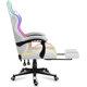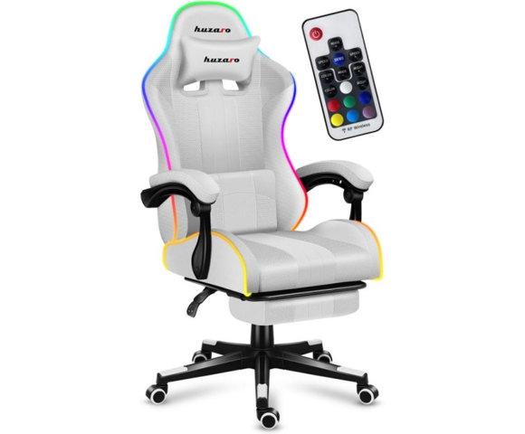 Huzaro HZ-Force 4.7 RGB (White) gaming stolica │ Nosivost: 140 kg, Dimenzije: 670 x 500 mm, visina 113-123 cm, Sjedište: 33 x 50 cm, visina 43-53 cm, Naslon: 55 x 81 cm, Materijal: Tkanina (sjedište i naslon), čelična baza, RGB osvjetljenje: Da, Podešavanje nagiba: 90 - 140°, Podesiva visina: 10 cm, Naslon za noge: Da, Jastuci za vrat i lumbalni dio: Da, USB potreban: Da, Broj točkića: 5 (guma/PU, 5 cm), Boja: Bijela, Daljinski upravljač: Da │