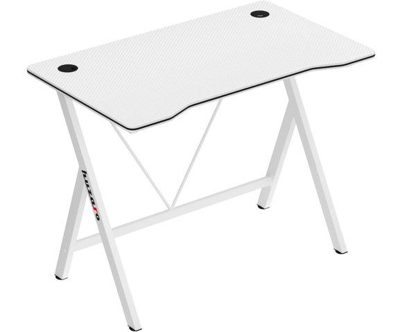 Huzaro Hero 1.4 White - gaming sto (Bijela) │ Dizajn: Pravi sto, nestandardni oblik ploče, Materijal: MDF/karbonska vlakna, metalni ram, Boja: Bijela, Dimenzije: 1000 x 500 x 750 mm, Debljina ploče: 1.5 cm, Podesive noge: Da, Otvor za kablove: Da, Podesiva visina: Ne, Držač za flašu: Ne │