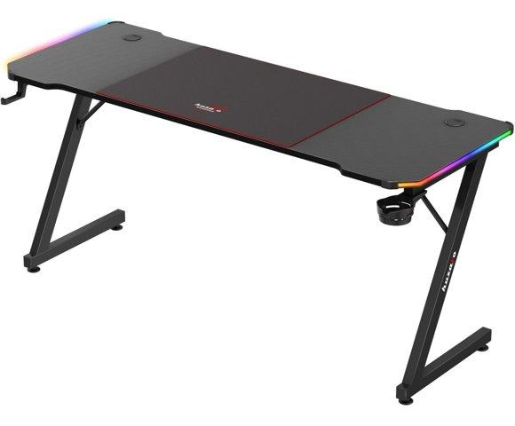 Huzaro Hero 4.8 RGB gaming sto │ Namjena: Gejming, kućna kancelarija, Dimenzije: 160 x 60 x 74 cm, Debljina ploče: 1.5 cm, Boja: Crna (ploča, ram), Kuka za slušalice: Da, Držač za čašu: Da, Otvor za kablove: Da, Podesiva visina: Ne │