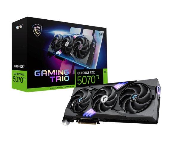 Kućni ljubimciMSI GeForce RTX 5070 Ti 16G Gaming Trio OC Plus - grafička kartica │ GPU: GeForce RTX 5070 Ti, Memorija: 16GB GDDR7, 256-bitna sabirnica, Rezolucija: 7680x4320 px, Prikazi: 4, CUDA jezgre: 8960, Portovi: 1x HDMI 2.1b, 3x DP 2.1b, Potrošnja: 300W, min. napajanje 750W, Dimenzije: 338 x 140 x 50 mm, Težina: 1,31 kg, Hlađenje: 3 ventilatora, aktivno, Osvjetljenje: Multi, OpenGL 4.6, NVIDIA G-SYNC, HDCP │