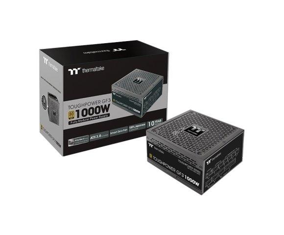 THERMALTAKE Toughpower GF3 1000W Gold napajanje (PS-TPD-1000FNFAGE-4) │ Snaga: 1000 W, Efikasnost: 80 PLUS Gold, PFC: Aktivni, Ulazni napon: 100-240V, Frekvencija: 50/60Hz, Ventilator: 135 mm fluidno ležajni, PCI-E: 6+2pin x 4, 12+4pin x 1, Zaštite: OCP, OVP, UVP, OPP, SCP, OTP, Dimenzije: 150 x 86 x 160 mm