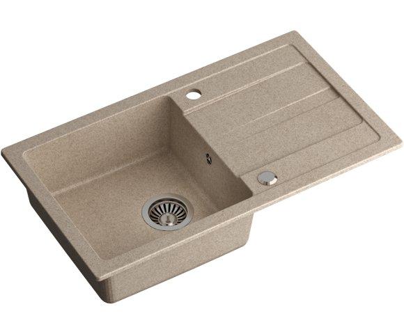 Quadron TOM 111 (Bež) sudopera (HCQM7744BEZ), Dimenzije: 770 x 440 x 176 mm, Komore: 1 (24L), Odvod: okrugli, ručni sa čepom, 3 ½", Boja: bež, Materijal: GraniteQ, Rupe za montažu: 2 x 35 mm + čep, Mogućnost povezivanja mašine za sudove/veš, Sifon i odvod uključen