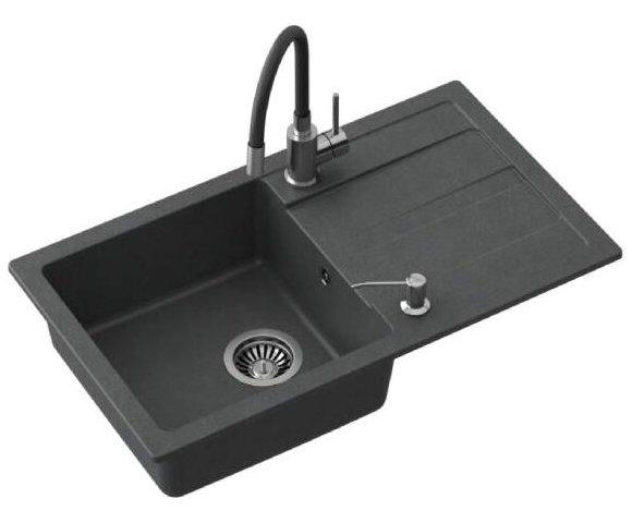 Kućni ljubimciQuadron READY MAX Set (Crna) sudopera + slavina + dozer (TQ7744RMCZ), Dimenzije: 770 x 440 x 176 mm, Slavina: Maggie, Sistem montaže slavine: Qfix, Materijal: Granite, Odvod: okrugli, ručni sa čepom, 3 ½" Q, Mogućnost povezivanja mašine za sudove/veš, Sifon uključen, Dozator (Keira): 320 ml