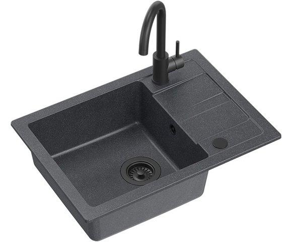 Quadron GO SMART set (crna) sudopera + slavina (TQ6244GSBLM), Dimenzije: 620 x 435 x 176 mm, Odvod: okrugli, ručni sa čepom, 3 ½", Boja: crna, Materijal: GraniteQ, Mogućnost povezivanja mašine za sudove/veš, Sifon i odvod uključen, Sistem montaže slavine: Qfix, Kuhinjska slavina: Kate