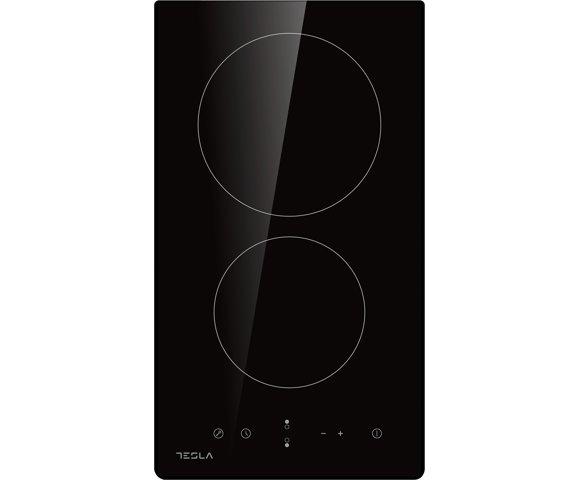 Tesla HV3201MB ugradna keramička ploča, Snaga: 2700–3300 W, Zone: 2 (1200 W Ø165 mm, 1800 W Ø200 mm), Upravljanje: Touch, Nivoi snage: 9, Tajmer: Do 99 min, Funkcije: Sigurnosno isključivanje, zaštita za djecu, indikator toplote, Dimenzije: 520×288×55 mm, Ugradne mjere: 268×490 mm, Težina: 4,7 kg