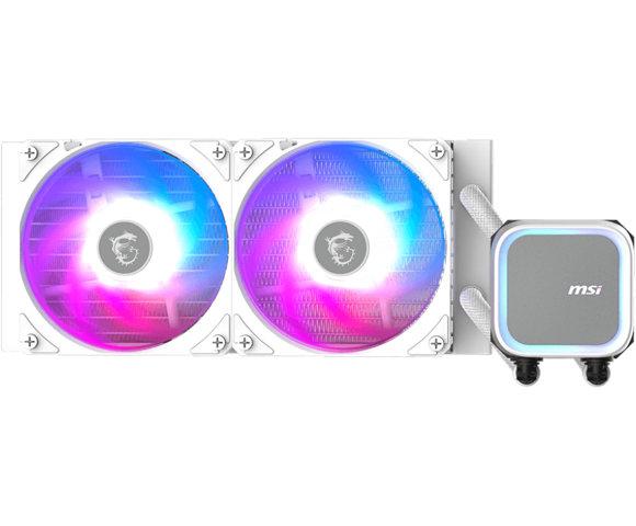 Kućni ljubimciMSI MAG CORELIQUID A13 240 WHITE vodeno hlađenje (306-7ZWCA21-L80) │ Ventilatori: 2x 120mm, Protok vazduha: 62.6 CFM, PWM, Osvetljenje: RGB, Podržani socketi: LGA 1700/1851, AM4/AM5, Materijali: Radijator - aluminijum, Blok - bakar, Radijator: 277x120x27 mm, Pumpe: 3800 RPM, 20 dB, Potrošnja: Ventilator 1.8W, Pumpa 2.88W, Konektori: Ventilator 3-pin, Pumpa 3-pin