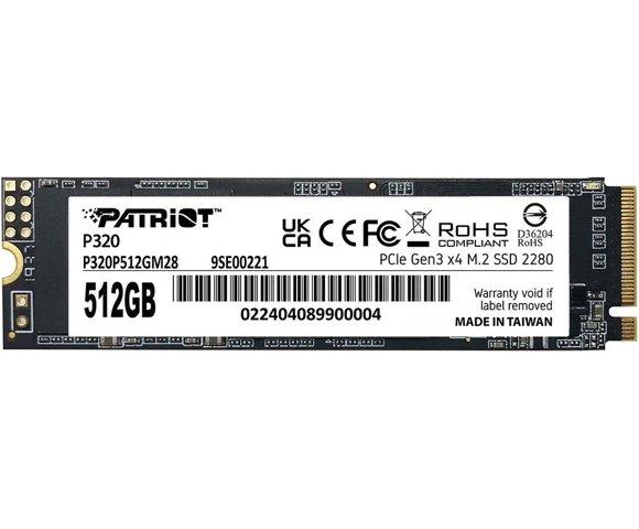 Kućni ljubimciPatriot P320 512GB M.2 2280 PCIE SSD disk (P320P512GM28), Kapacitet: 512 GB, Interfejs: PCIe Gen3 ×4, NVMe 1.3, Brzina čitanja: do 3000 MB/s, Brzina pisanja: do 2200 MB/s, Dimenzije: 80 × 22 × 3,8 mm