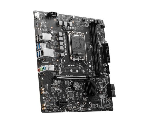 Kućni ljubimciMSI PRO B760M-B DDR4 matična ploča, Matična ploča: Intel B760, micro ATX, Podnožje: LGA 1700, RAM: 2x DDR4, do 64GB, 4800MHz, Skladištenje: 1x M.2, 4x SATA, PCIe slotovi: 1x PCIe x16, 1x PCIe x1, Mreža: Gigabit Ethernet, Audio: Realtek ALC897, 7.1 CH, Portovi: HDMI 2.1, VGA, USB 3.2 Gen1