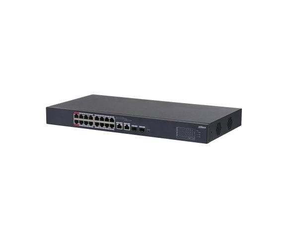 Dahua DH-CS4218-16ET-135 menažirani svič, Layer: 2, Portovi: 16x RJ-45 (Gigabit), 2x SFP, VLAN: Da (32), Kapacitet: 7.2 Gbit/s, Brzina prosleđivanja: 5.36 Mpps, Jumbo frame: 15000, PoE: Da, 30W po portu, ukupno 135W, Upravljanje: Mrežno, Materijal: Metal, Dimenzije: 440 x 220 x 44 mm, Težina: 2.23 kg
