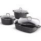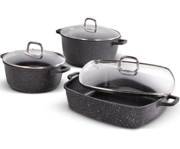 LAMART LT1287 set šerpi sa poklopcem, Materijal: Stakleni poklopac, Aluminijum, Boja: Crna, Set: 6 kom (3 poklopca), Ostalo: Nelepljiva površina, Lako za čišćenje, Otvor za paru na poklopcu