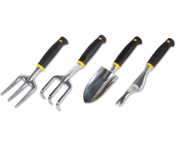 FIELDMANN FZNR 1104 Set baštenskog alata, Boja: Crna, Materijal: Aluminijum, Sadržaj pakovanja: Baštenska grabulja, Lopatice, Vadilica za korov, Kultivator za cveće, Ostalo: Mekana ručka