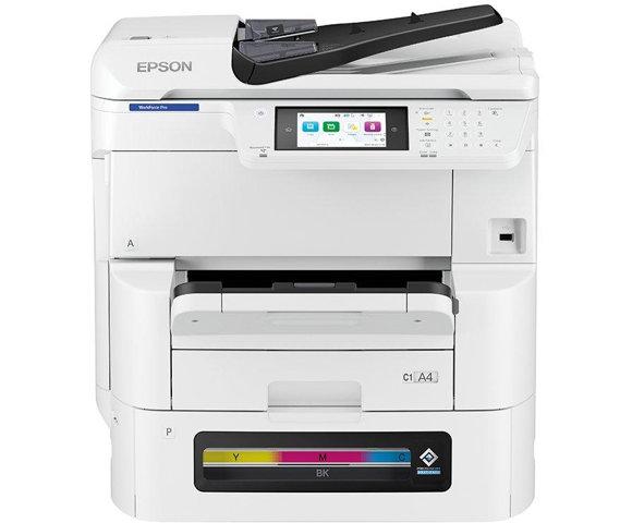 Epson WorkForce Pro EM-C8100RDWF inkjet MFP štampač (C11CL31401), Rezolucija: 4800 x 1200 DPI, Duplex: Štampa i skeniranje, Brzina: 25 ppm crno / 24 ppm boja, Kopiranje: A3, do 999 kopija, Skeniranje: 1200 x 2400 DPI, CIS, ADF, Ulaz/Izlaz: 335 / 250 str., Format: Do A3, Povzivanje Wi-Fi / LAN / USB, Ekran: Touch, u boji