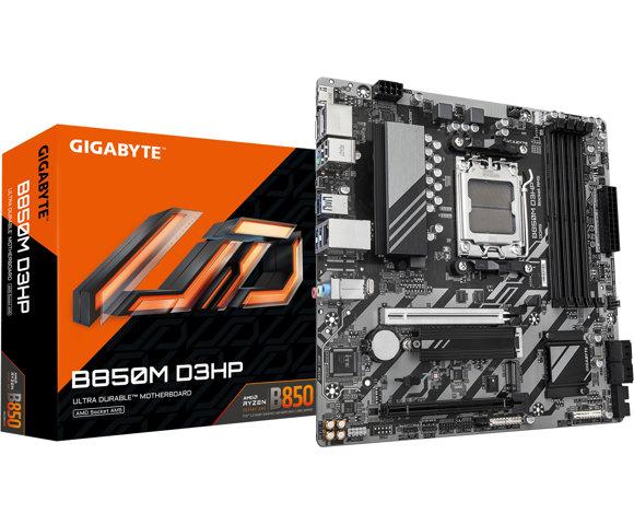 GIGABYTE B850M D3HP matična ploča │ Matična ploča: AMD B850, mikro ATX, Podnožje: AM5, RAM: 4x DDR5 DIMM, do 8200MHz, maksimalno 256GB, Skladištenje: 4x SATA III, 2x M.2 (PCIe 5.0/4.0), Grafika: HDMI 2.1, DisplayPort 2.1, Mreža: LAN 1Gbps, bez Wi-Fi, Ostalo: PCIe 5.0 x16, RAID 0/1/10
