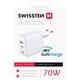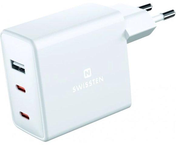 SWISSTEN GaN 70W 2xUSB-C 1xUSB punjač za telefon │ Ulaz: AC 100-240V, 2A, USB-C PD izlaz: 65W (5V/3A, 9V/3A, 12V/3A, 15V/3A, 20V/3.25A), Ukupan USB-C izlaz: 65W, USB-A izlaz: 5V/1A, 5W