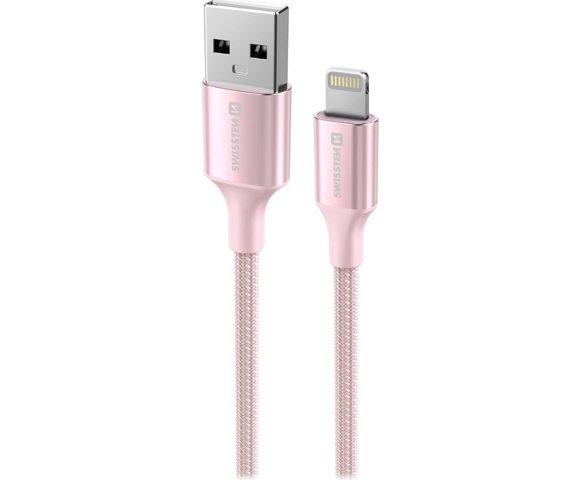 Swissten Textile II USB/Lightning 1.5m Pink kabl, Struja: 3 A, Brzina prenosa podataka: 480 Mb/s
