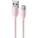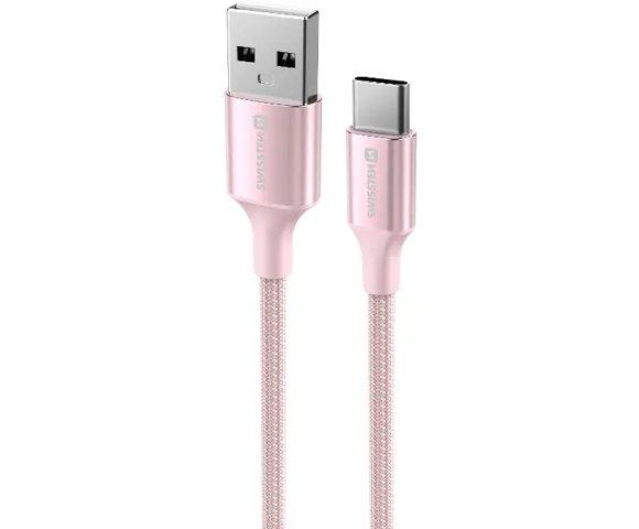 Swissten Textile II USB / USB-C 1.5m Pink kabl, Konektori: USB-A na USB-C, Materijal: Aluminijum, tekstilno opletenje, Struja: 3 A, Brzina prenosa: 480 Mb/s
