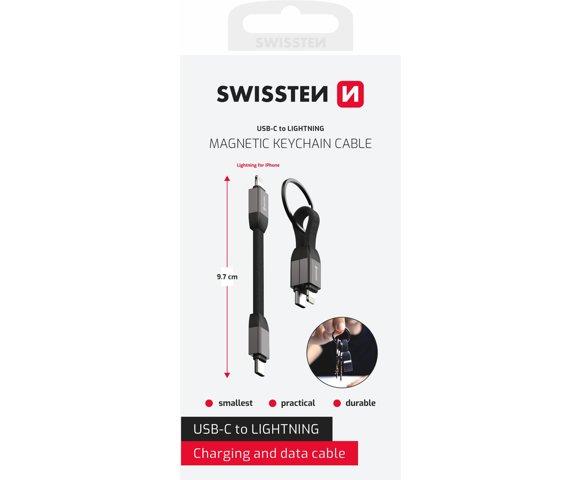 Swissten USB-C / Lightning 9.7cm Magnetic keychain, Priključci: USB-C / Lightning, Snaga: 9V DC 3A (15W), Brzina prenosa: 480 Mb/s, Materijal: Tekstil, TPU, aluminijumska legura