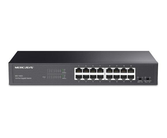 Mercusys MS116GS switch, 16 Gigabit portova, Plug & Play, Režimi: Default / Isolation / Loop Prevention, Detekcija mrežnih petlji, Metalno kućište, Montaža na sto ili rack