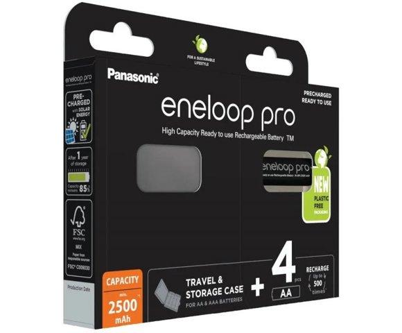 PANASONIC ENELOOP PRO AA 2500mAh 4pcs set baterija │ Tip: Punjiva Ni-MH AA baterija, Kapacitet: 2500 mAh, Napon: 1.2 V, Maks. broj punjenja: 500, Pakovanje: 4 kom, Boja: Crna