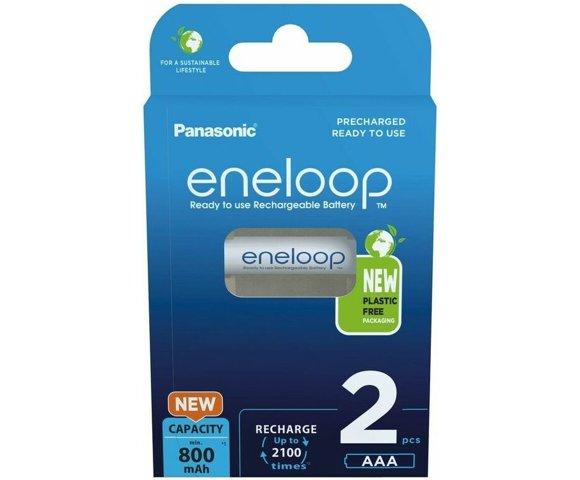 Panasonic Eneloop AAA 800 mAh 2pcs set baterija │ Tip: Punjive Ni-MH baterije, Kapacitet: 800 mAh, Napon: 1.2 V, Punjenja: do 2100 puta, Veličina: AAA, Boja: Bijela, Pakovanje: 2 kom