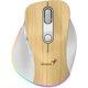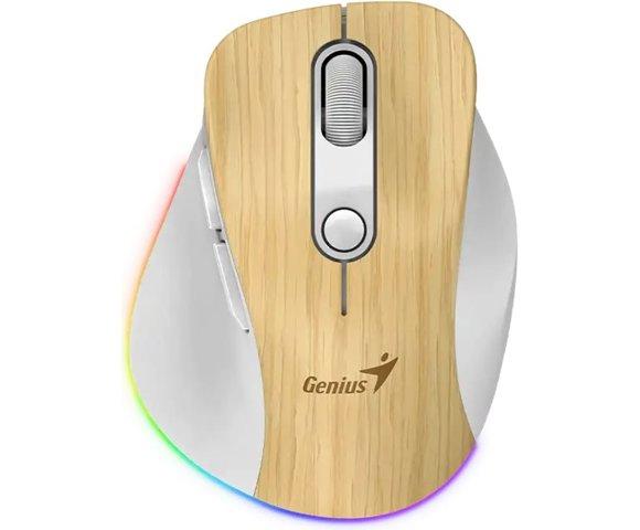 GENIUS Ergo 9000S Pro Pine Wood bežični miš, Bluetooth 5.0 + 2.4GHz, Punjenje USB-C, RGB LED, 6 dugmadi, 800–2400 DPI, Tihi klik, Ergonomski dizajn