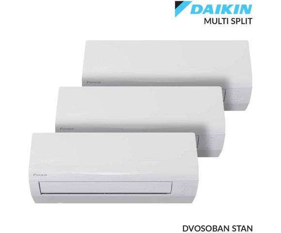 Daikin paket 2 (dvosoban stan) multisplit / Sastoji se od: Spoljna jedinica 28K 3MXF68A9, Unutrašnja jedinica: 2x zidna 9K CTXF25F i zidna 12K CTXF35F