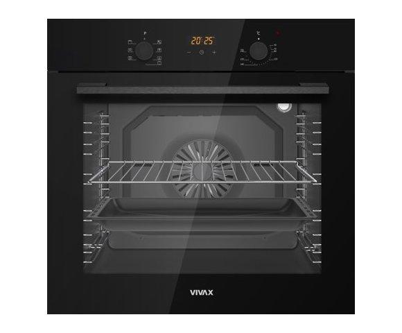 Vivax BO-806BFTM G ugradna pećnica Volumen rerne: 80 L, Tip rerne: Ventilatorska, Broj programa: 6, Snaga: 2300 W, Temperaturni raspon: 40°C-240°C, Crno staklo, Mehanički tajmer, Child lock, Pop-up gumbi; Energetski razred: A, Dimenzije (š/v/d): 59,5 x 57,5 x 59,5 cm