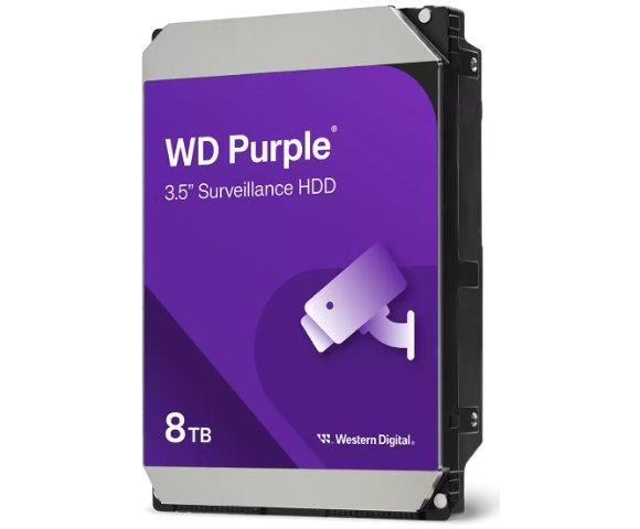 Western Digital Purple Surveillance 8TB HDD (WD85PURZ), Kapacitet 8TB, Form Faktor 3.5-Inch, Konektor SATA, Brzina Prenosa do 215MB/s, Brzina Diska 5640 RPM, Tehnologija Snimanja CMR, Veličina Keša 256MB