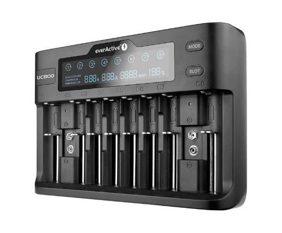 everActive UC800 punjač za baterije, Podržava 10 baterija, Kompatibilne veličine: 9v, AA, AAA, Ugrađeni displej, Ulazni napon 12 V