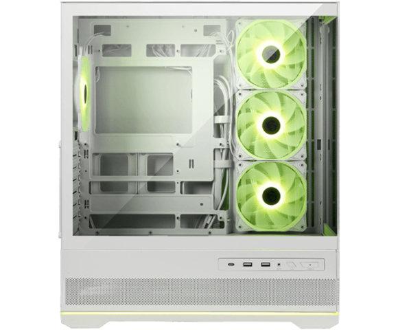 MSI MAG PANO 110R PZ gaming kućište, Panoramski dizajn od 270 stepeni sa kaljenim staklom, Podrška za matičnie ploče: ATX, Micro-ATX, Mini-ITX, Pre-instalirani 4x 120mm reverse blade ventilatori, ARGB kontrolna ploča za do 5 ventilatora
