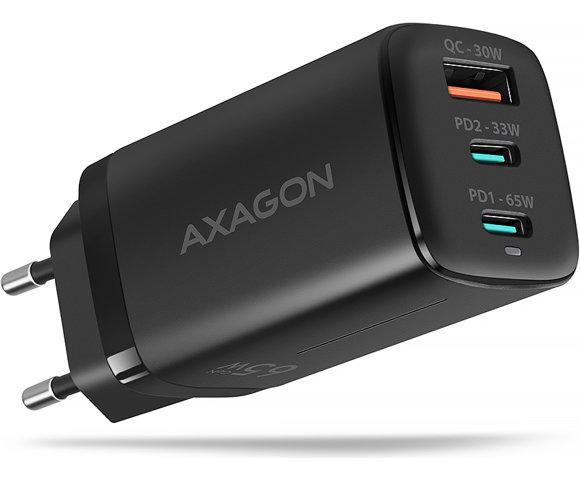 Axagon ACU-DPQ65 GaN wallcharger 3x port (USB-A + 2x USB-C), PD3.0 / PPS / QC4+ / SFC2.0 / AFC / SCP / FCP / Apple. Ukupna snaga 65W