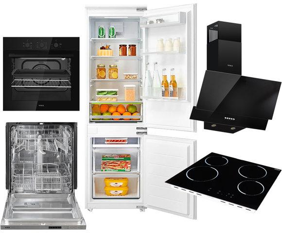 Vivax Ugradni set 2025, Staklokeramička ploča (BH-04MVC) + Ugradna pećnica (BO-606FTM G) + Kuhinjska napa (CHO-60CSD100T GB) + Ugradna mašina za posuđe (DWB-601252C) + Ugradni frižider No Frost (CFRB-248ENF)