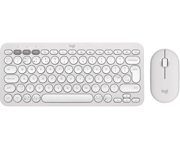 Kućni ljubimciLogitech Pebble 2 Combo Tonal White US International (Qwerty) tastatura i miš komplet, Bluetooth Low Energy, Uparivanje sa do 3 uređaja, Tihi klikovi sa Silent Touch tehnologijom, DPI: 400-4000 dpi