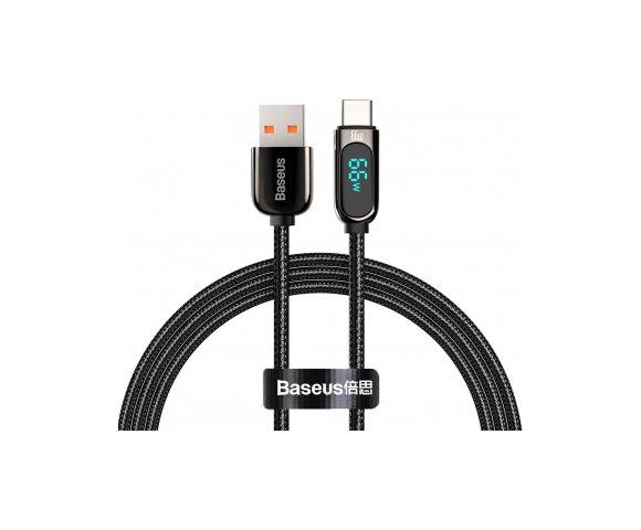 Baseus Display USB-A / USB-C 66W 2m Black kabl, Brzo punjenje 66W, Ugrađeni ekran za status punjenja, Najlonski pleteni omot za fleksibilnost