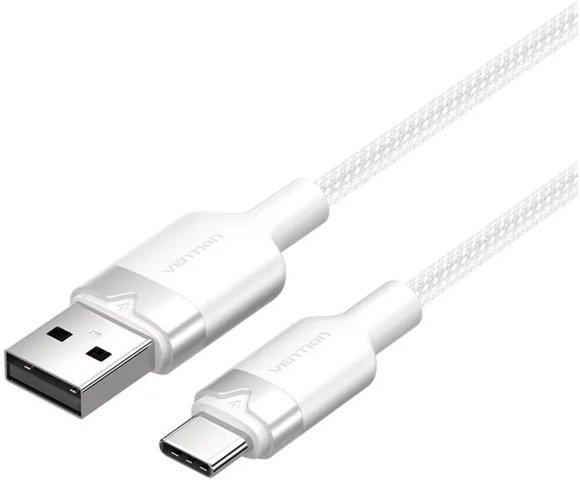 Vention USB-A / USB-C 2m White kabl, Dužina 2m, Maksimalna struja 3 A, Brzina prenosa podataka do 480 Mb/s, PVC i aluminijumsko kućište
