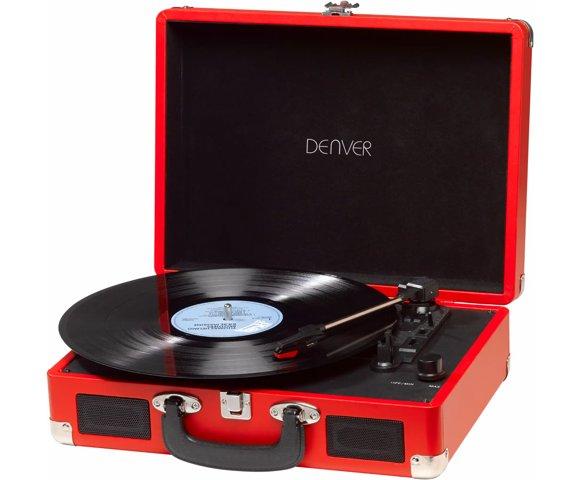 DENVER VPL-120 Red gramofon, Retro dizajn, Višestruke brzine reprodukcije, Prijenosni dizajn kofera, Ugrađeni zvučnici, Phono izlaz, Auto-stop ručica