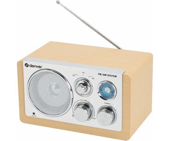 Denver TR-63LW AM/FM Radio sa AUX ulazom, AM/FM analogni radio, Teleskopska FM antena i ugrađena AM antena, Rotaciono dugme za jačinu zvuka, Maksimalni izlaz od 15W, Napajanje od 230V ili 4 x AA baterije