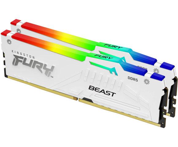Kućni ljubimciKingston FURY Beast RGB White 64GB (2 x 32 GB) DDR5-6000 RAM memorija, Brzina 6000 MT/s, CAS kašnjenje 30, Napon 1.35 V, On-Die ECC, RGB osvjetljenje