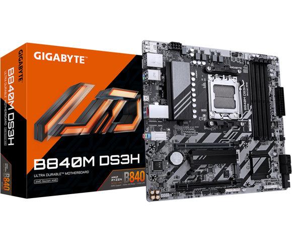 GIGABYTE B840M DS3H matična ploča, X3D Turbo Mod, Podrška za AMD Ryzen 9000/8000/7000 seriju procesora, Digitalno 8+2+2 fazno VRM rješenje, 4x DDR5-8200
