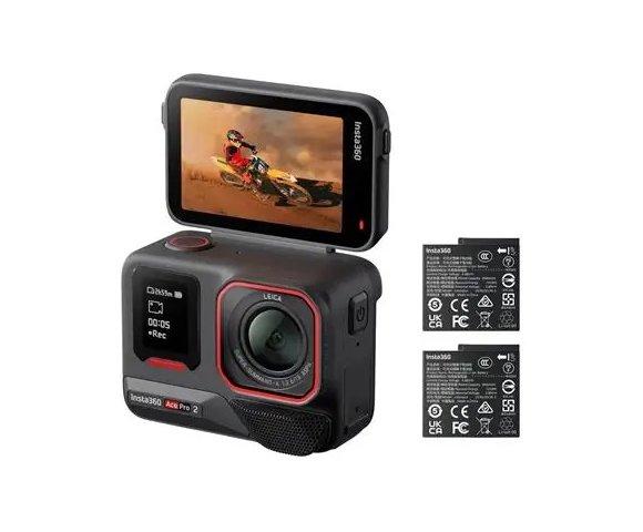 Insta360 Ace Pro 2 Dual Battery Bundle, 8K 30fps, 4K120FPS, 157° FOV │ Vodootporno do 11m│ FlowState Stabilizacija, 360º Horizon lock, 2.5" Flip Touchscreen, Kontrola Gestovima, Glasovna Kontrola 2.0