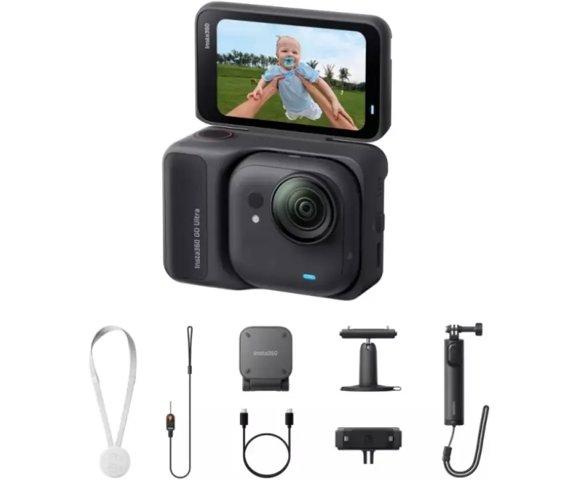 Insta360 GO Ultra Creator Bundle (Midnight Black), Lagan dizajn 53g, Montaža bilo gdje sa magnetnim dodacima, 4K/60fps video, Ultra široki 156° FOV, FLOWSTATE stabilizacija, Glasovna kontrola 2.0 i kontrola gestovima, 2.5" flip ekran na dodir, 360 horizon lock