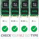 Adapter podržava upotrebu jednostranih i dvostranih SATA i NVMe (PCI Express) M.2 SSD-ova. Redukcija ne ograničava kapacitet SSD-a, i mogu se koristiti bilo koje M.2 kartice dužine do 110 mm. Istovremeni rad oba diska je uobičajen.