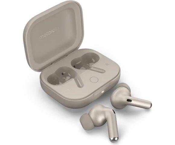 Motorola Moto Buds+ Beach Sand bežične slušalice, Kompatibilnost sa Dolby Head Tracking, Hi-Res Audio, Aktivno poništavanje buke, Mod transparentnosti, Trajanje baterije do 8h / 38h sa kutijom za punjenje